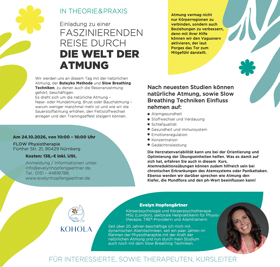 Somit können wir über die Atmung positiven Einfluss auf unser physisches und psychisches Wohlbefinden nehmen.